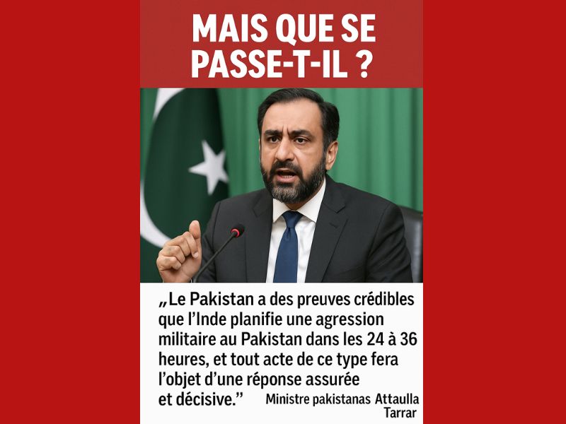 Le ton monte dangereusement entre les deux puissances nucléaires d’Asie du Sud. Dans une déclaration aussi brève qu’inquiétante, le ministre pakistanais de l’Information, Attaullah Tarrar, a lancé ce mardi une alerte à la communauté internationale : « Le Pakistan a des preuves crédibles que l'Inde planifie une agression militaire au Pakistan dans les 24 à 36 heures, et tout acte de ce type fera l'objet d'une réponse assurée et décisive. »