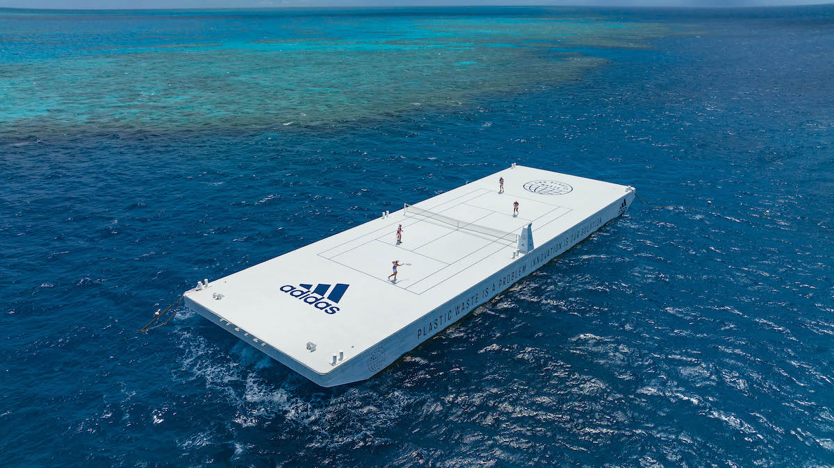 Située au sommet de l’un des plus grands récifs coralliens, le terrain a pour but d’inciter les Australiens à participer activement à la lutte contre la pollution plastique des océans, ainsi que de promouvoir la dernière collection d’Adidas réalisée en collaboration avec l’ONG Parley Ocean Plastic.