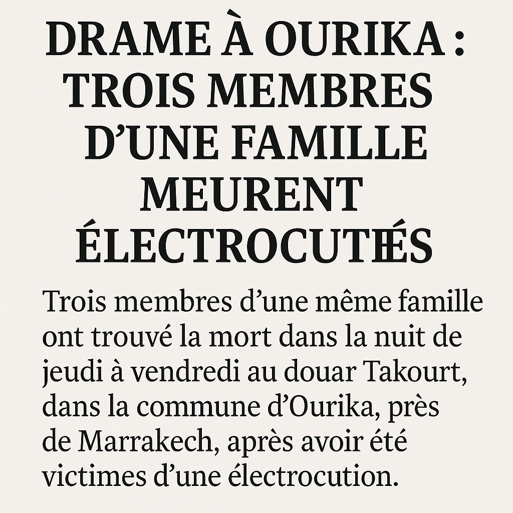 Drame à Ourika : trois membres d’une famille meurent électrocutés