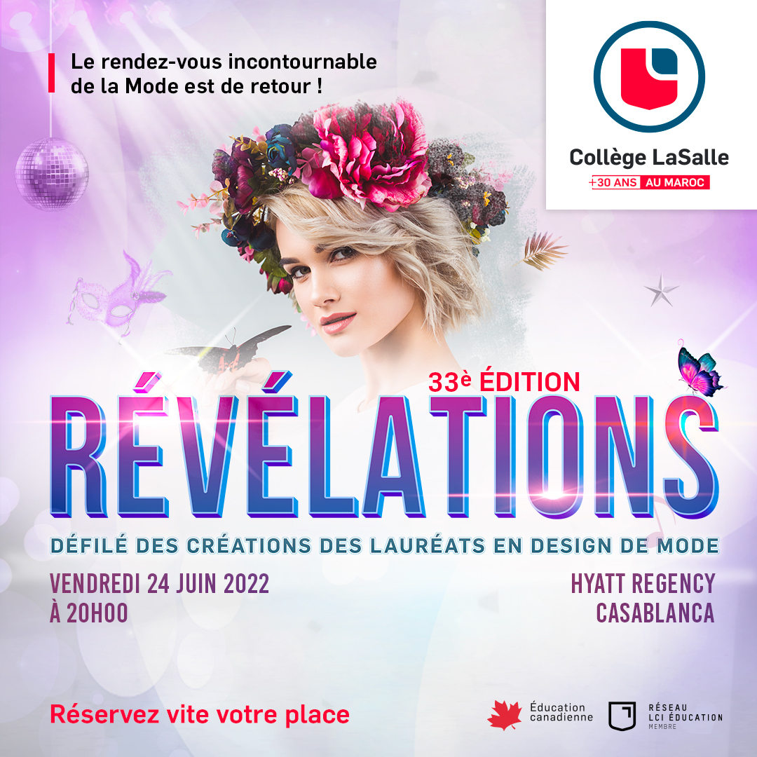 Pensé et lancé par Collège LaSalle dans le respect des normes internationales, « Révélations » est devenu, au fil de ses 33 années d’existence, un rendez-vous incontournable de la mode au Maroc en général, le rendez-vous incontournable de la mode dans le milieu estudiantin en particulier.