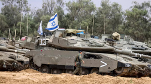 Blindés israéliens de type Merkava aux alentours de la bande de Gaza, le 4 mai 2025. AFP - MENAHEM KAHANA
