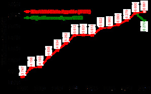 Figure 1 Evolution de l’électricité nette appelée durant les mois novembre et décembre[2], [3] (disques rouges), notre estimation pour 2022 (cercle rouge) et l’objectif prévu par la mesure de bonification (diamant vert)