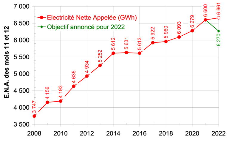 Quant à espérer que le total national atteigne une baisse de 5% de l’électricité appelée des mois 11-12/2022 par rapport à celle des mêmes mois de 2021, cela laisse dubitatif. D’autant plus qu’il y a des fluctuations interannuelles substantielles sur l’électricité nette appelée mensuellement, même désaisonnalisée.