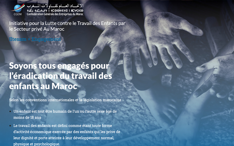 La Confédération générale des entreprises du Maroc (CGEM), en collaboration avec l’Organisation internationale du travail (OIT) et le projet MAP’16, a lancé la plateforme Iltesam, Initiative du secteur privé marocain pour la lutte contre le travail des enfants.