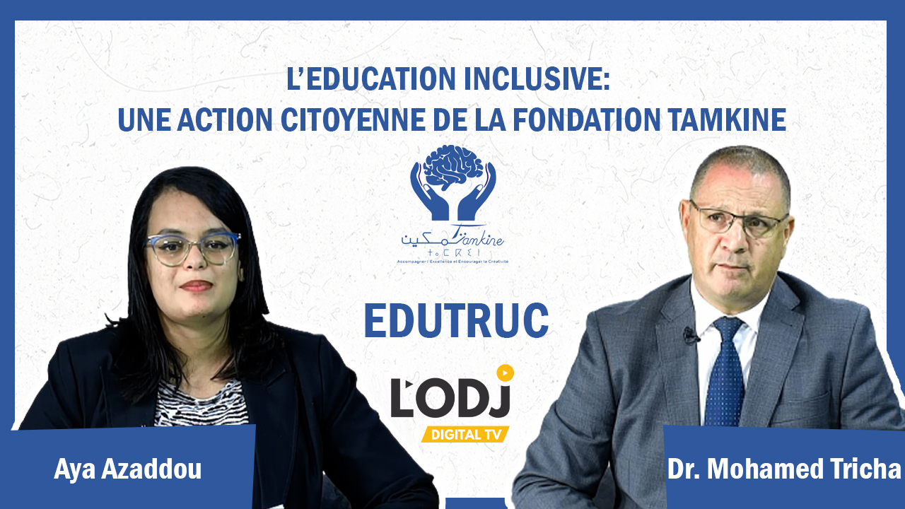 Pour son premier épisode, « EDUTRUC » reçoit le Professeur Mohamed Tricha pour adresser le sujet de l’éducation inclusive en tant qu’action citoyenne de la Fondation Tamkine.