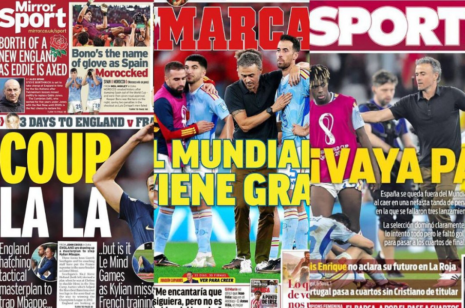 Au Qatar, beIN Sports n’a d’yeux que pour Yassine Bounou: «grâce à sa performance légendaire, le Maroc se qualifie». Au Portugal, Mais Futebol n’en revient pas et titre «Surprise!», alors que Record n’est pas clément envers l’Espagne: «Quel Fiasco!».