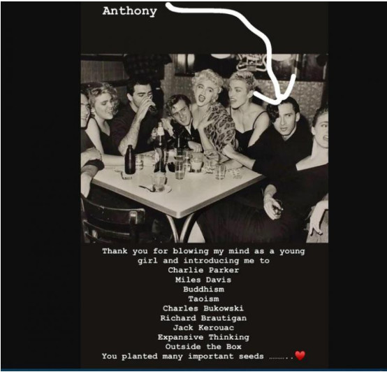 Sur Instagram, « La Reine de la Pop » a posté une story pour lui rendre hommage. Elle a partagé une photo d’un verre entre amis, une flèche pointant Anthony Ciccone parmi eux. « Merci de m’avoir époustouflée en tant que jeune fille et de m’avoir initiée à Charlie Parker, Miles Davis… » , écrit-elle .