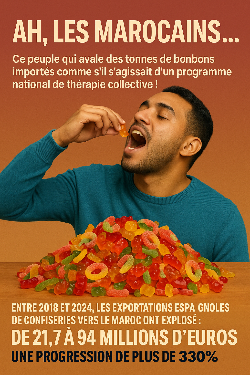 Ah, les Marocains.. Ce peuple qui avale des tonnes de bonbons importés comme s’il s’agissait d’un programme national de thérapie collective!