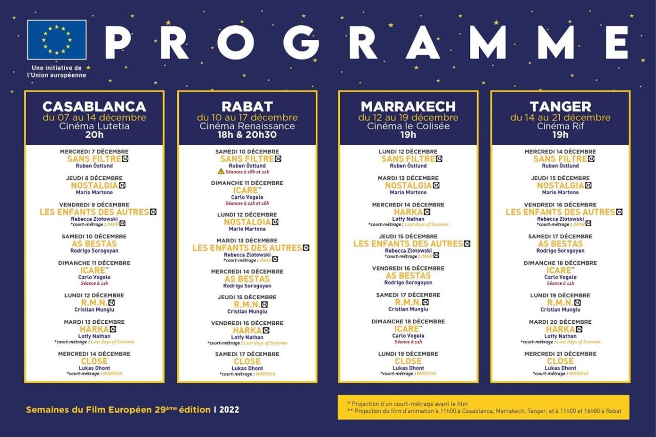 Les Semaines du Cinéma Européen, organisées par l'Union Européenne au Maroc, reviennent, du 7 au 21 décembre, dans les différentes salles du Royaume avec une sélection de 8 longs métrages primés dans les plus grands festivals de cinéma du monde, en plus de trois courts métrages de cinéastes prometteurs du sud de la Méditerranée.