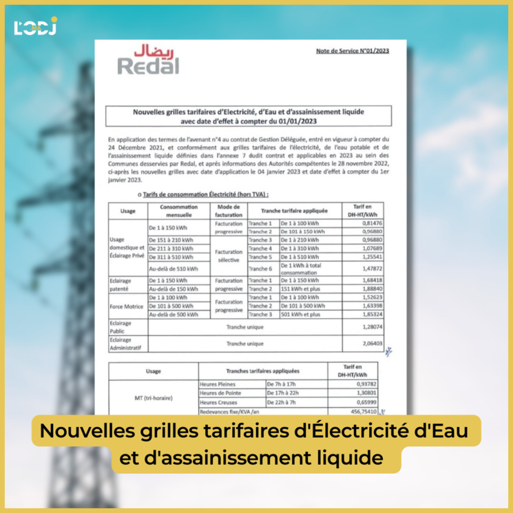 Les nouvelles grilles tarifaires d'Électricité d'Eau et d'assainissement liquide.