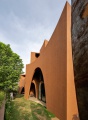 En collaboration avec des artisans locaux et des sous-traitants du voisinage immédiat, la maison a été construite à l'aide de briques, de grès et d'enduit à la chaux d'origine locale, et comprend des processus de recyclage de l'eau, de récupération des eaux de pluie et de panneaux solaires pour la production d'énergie. La maison est construite de manière durable et est sensible au climat.