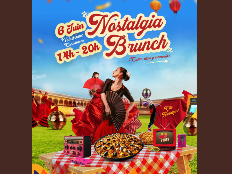 Dimanche 6 juillet 2025, Casablanca s’apprête à vivre un événement qui fera parler les taxis, les stories Instagram et même les mamans fans de tortillas : le Nostalgia Brunch, une clôture flamboyante pour le Nostalgia Lovers Festival. Imaginez le Vélodrome transformé en arène andalouse, baignée de lumière, où les saveurs espagnoles rencontrent les hits des années 80. Oui, c’est aussi caliente que ça en a l’air !