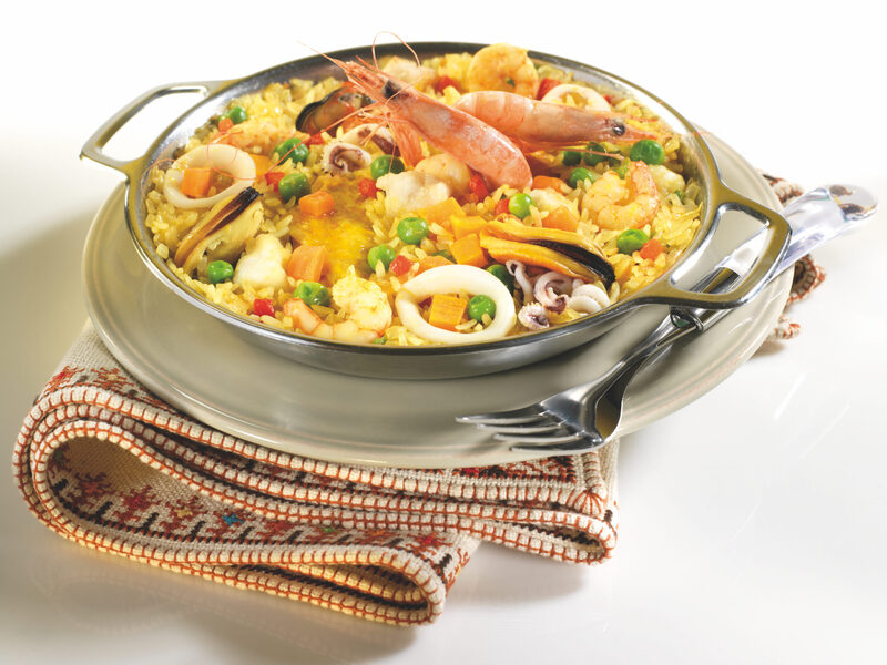 Servez la Paella Épicée chaud et savourez cette fusion méditerranéenne aux subtiles touches marocaines.