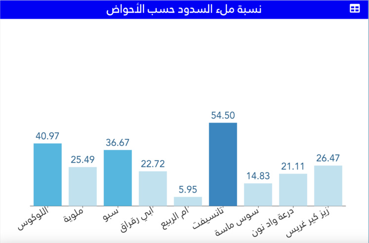 Les régions du bassin de Tansift et du bassin de Loukkos ont enregistré les plus fortes augmentations du taux de remplissage, offrant un signe d'espoir pour l'ensemble du pays. Avec une augmentation de 6,41 %, le bassin de Tansift affiche désormais un taux de remplissage estimé à 55,28 %, tandis que le bassin de Loukkos a enregistré une hausse de 0,9 %, atteignant un taux de remplissage d'environ 39,53 %.