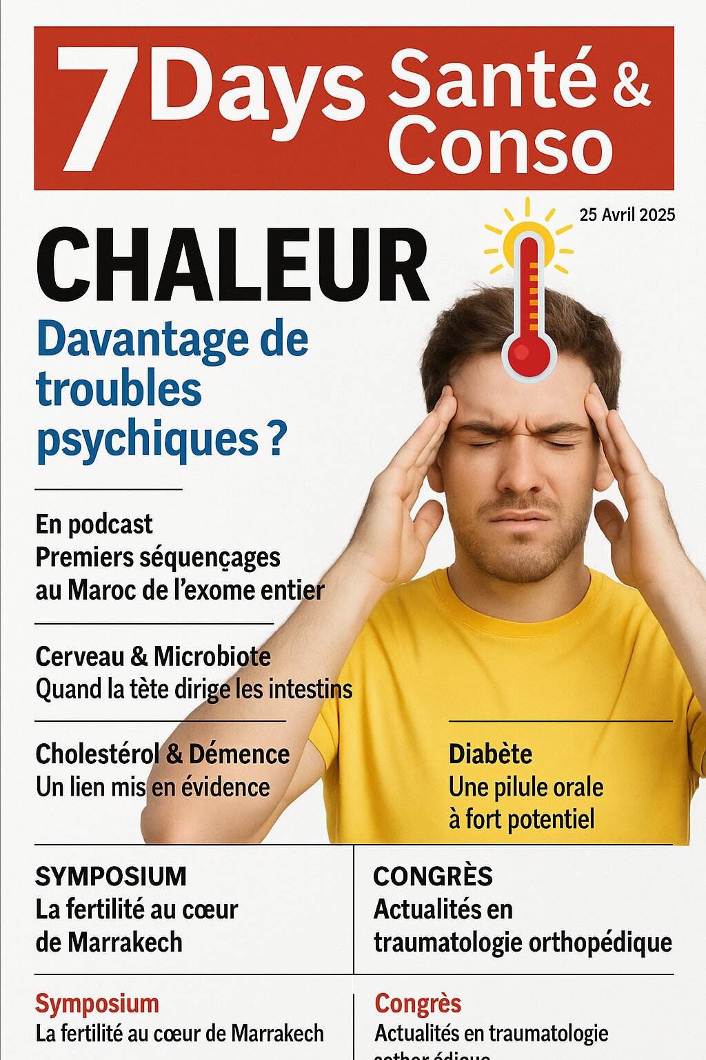 Ce numéro de 7 Days Santé & Conso du 25 avril 2025 aborde divers sujets de santé et de consommation. Il explore l'impact de la chaleur sur la santé mentale, soulignant une augmentation potentielle des troubles psychiques. Le podcast met également en lumière des avancées médicales au Maroc, comme le séquençage de l'exome entier et l'influence du cerveau sur le microbiote intestinal. D'autres articles traitent de la suppression du sucre, du lien entre le cholestérol et la démence, et d'une nouvelle pilule orale prometteuse pour le traitement du diabète. Enfin, il annonce un symposium sur la fertilité à Marrakech et un congrès sur la traumatologie orthopédique, témoignant de l'activité dans le secteur de la santé.