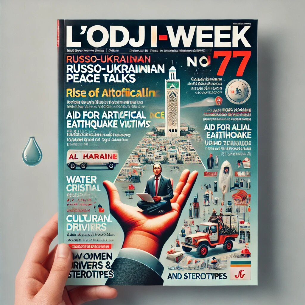 L'hebdomadaire L'ODJ I-Week N°77 offre un aperçu de l'actualité marocaine et internationale. Les articles couvrent des sujets variés allant des pourparlers de paix russo-ukrainiens à l'essor de l'intelligence artificielle au Maroc. Le magazine met en lumière des événements nationaux tels que l'aide aux sinistrés du séisme d'Al Haouz et les initiatives culturelles durant le Ramadan. Il aborde également des thèmes de société comme la situation hydrique, la pénurie de médicaments et les stéréotypes liés aux femmes conductrices. Enfin, la publication explore des tendances lifestyle, des nouveautés technologiques et des événements culturels marquants.
