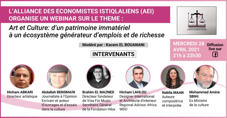 Les participants à ce webinar étaient Hicham Abkari, Directeur artistique ; Abdallah Bensmain, journaliste à L’Opinion, écrivain et auteur d’ouvrages et d’essais dans la culture ; Brahim El Mazned, Directeur fondateur de Visa For Music et Secrétaire général de la Fondation Hiba ; Hicham Lahlou, Designer international et Architecte d’intérieur, Regional Advisor Africa WDO ; Nabila Maan, auteure, compositrice et interprète et Mohammed Amine Sbihi, Ex ministre de la Culture.