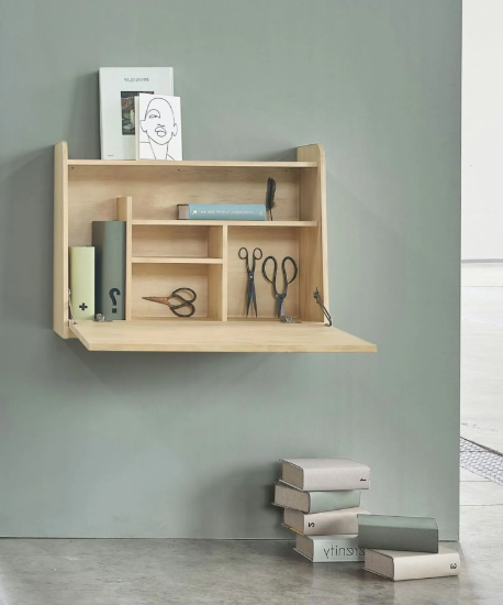 Le bureau mural est une option idéale pour les petits appartements ou les pièces avec un espace limité, car il ne nécessite pas de pieds. Grâce à son design suspendu, il permet de créer un espace de travail compact et supplémentaire, sans prendre trop de place dans la maison et en préservant la vie privée. Même s'il est très petit, il peut être équipé d'un tiroir pour offrir davantage de fonctionnalité.