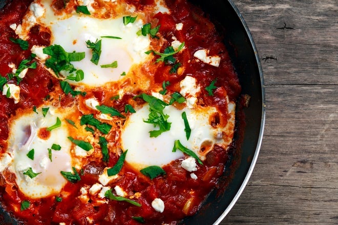 Pour cette recette, faites revenir les condiments et versez les concentrés de tomate. Mettez les morceaux dans la poêle, puis les œufs. Servez ce repas avec la coriandre hachée.