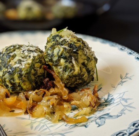 Boulettes d’herbes aux oignons caramélisés
