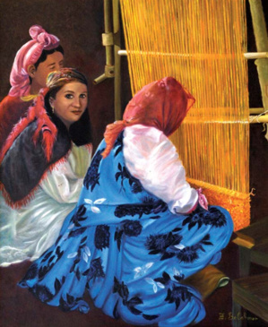 "Les mains qui travaillent et nourrissent" met en lumière le rôle des femmes dès leur plus jeune âge, alors qu'elles prennent soin de leurs enfants tout en assumant les tâches domestiques et l'éducation. Ces toiles nous rappellent la force et la résilience des femmes qui jouent un rôle central dans notre société.