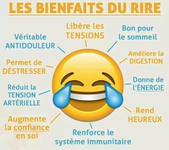 Pourtant, une minute de rire vaudrait 10 minutes de gymnastique et 30 minutes de relaxation : autant d'arguments pour multiplier les occasions de se laisser emporter et rire aux éclats. Antidouleur, antistress... Il ne possède que des vertus.