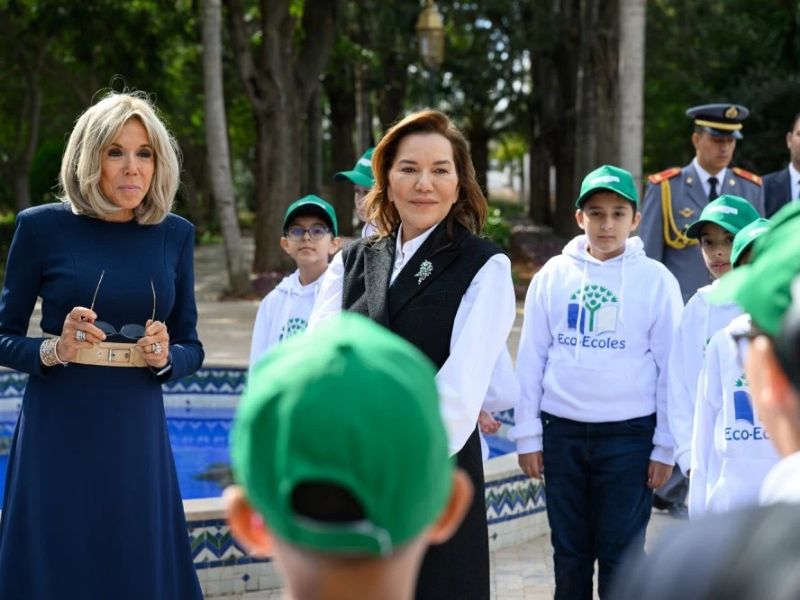 SAR La Princesse Lalla Hasnaa et Madame Brigitte Macron ont, par la suite, été saluées par des éco-écoliers, avant de visiter le jardin d’essais botaniques.