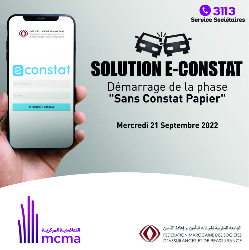 La Fédération Marocaine des Sociétés d’Assurances et de Réassurance en collaboration avec l’Autorité de Contrôle des Assurances et de la Prévoyance Sociale, les compagnies d’assurance et les sociétés d’assistance lancent une nouvelle application de gestion électronique des sinistres : l’E-Constat.