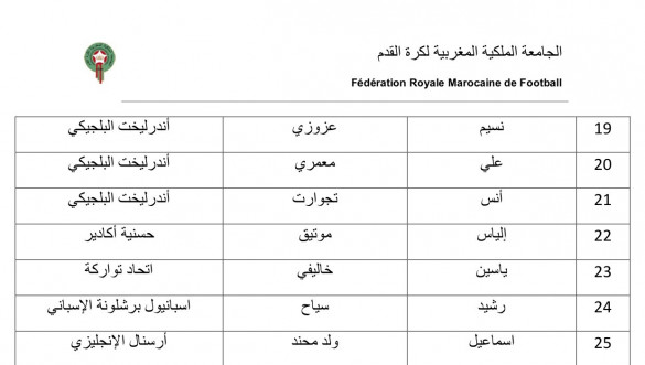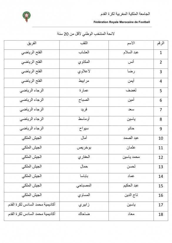 À cette occasion, l'entraîneur national Mohamed Ouahbi a sélectionné 25 joueurs, dont 5 évoluant dans des clubs européens.