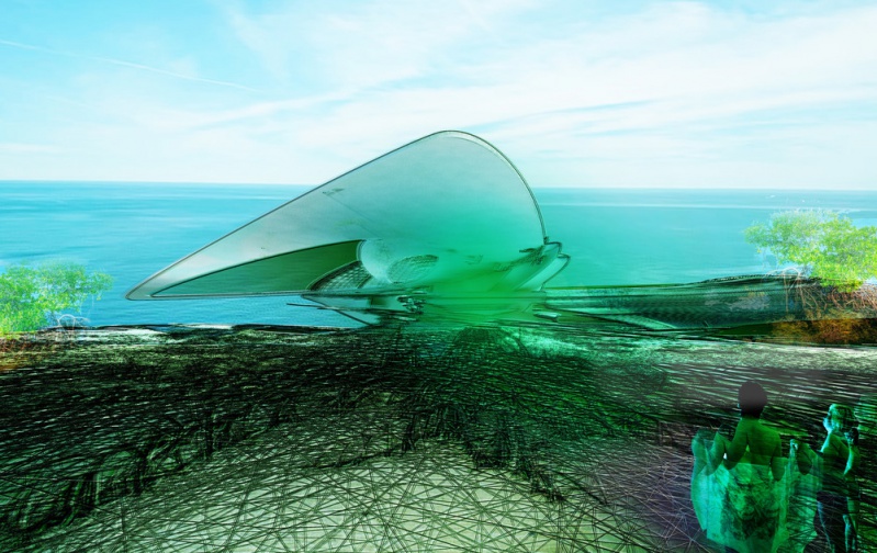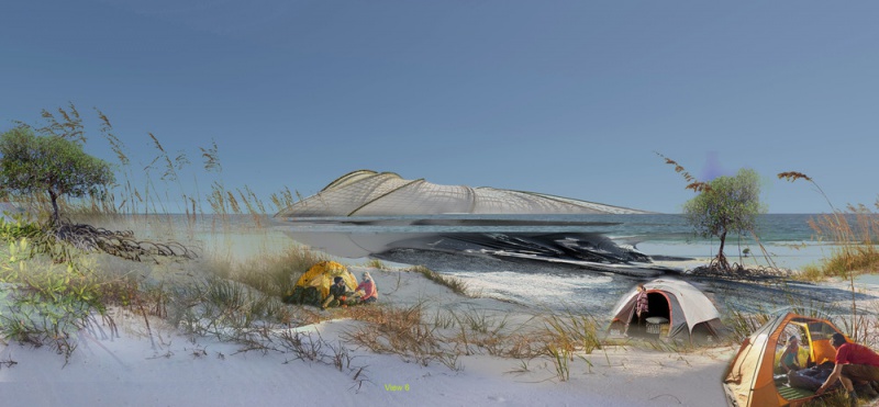 L'île grandit au gré de ses habitants qui atteignent son rivage en bateau. C'est un hôtel de terrain auto-construit qui devient un bâtiment communautaire collectif pour eux-mêmes et pour les autres. Escapades utopiques, corrigeant les déséquilibres environnementaux de la pollution plastique dans nos océans tout en profitant de la beauté d'une île océanique autonome, autonome et auto-enrichie.