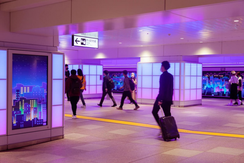 Afin de donner vie à la vision de la JR-East pour son premier projet multimédia, les équipes techniques et créatives de Montréal et Tokyo ont tiré parti du savoir-faire du studio en matière d’optimisation de carrefours de transport à trafic élevé, à l’image de ses projets à l’Aéroport Singapour-Changi, à l’Aéroport international de Los Angeles et au Moynihan Train Hall de New York.