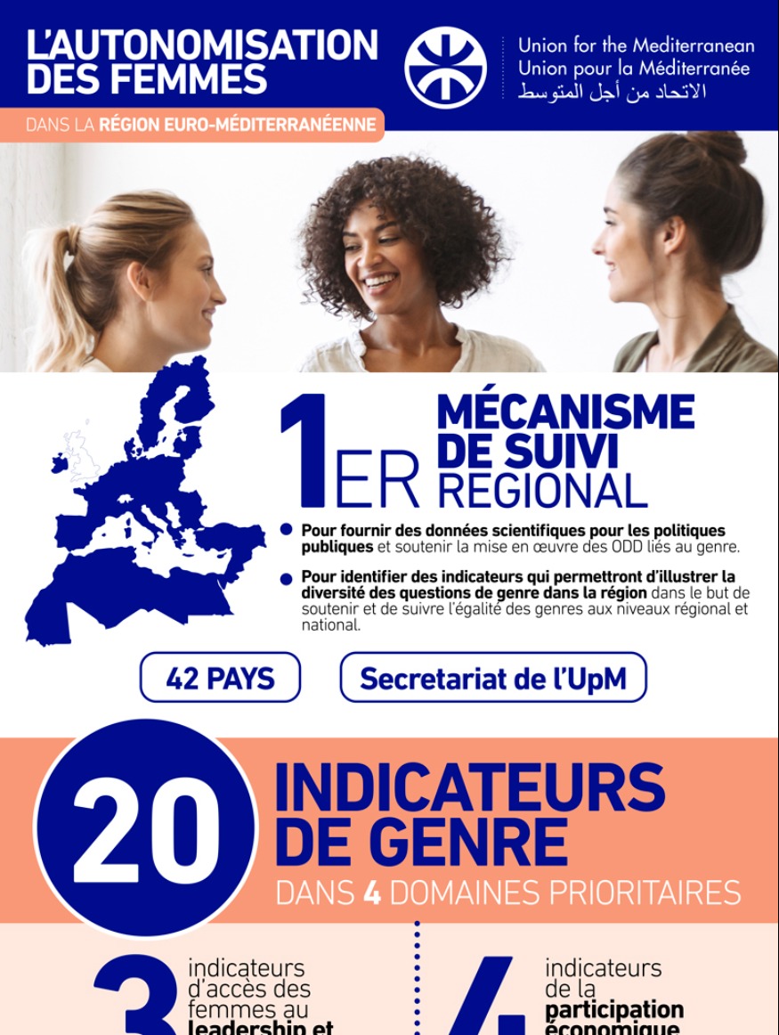 Les États Membres de l'UpM, l'Union pour la Méditerranée, ont approuvé le suivi intergouvernemental et les 20 indicateurs permettant de suivre les progrès réalisés en matière d'égalité entre les sexes dans la région euro-méditerranéenne. Ce mécanisme qui va aider à la mise en œuvre des Objectifs de Développement Durable, a été mis en place dans le cadre du suivi de la Déclaration Ministérielle de l'UpM sur le renforcement du rôle des femmes dans la société, adoptée en 2017 au Caire.