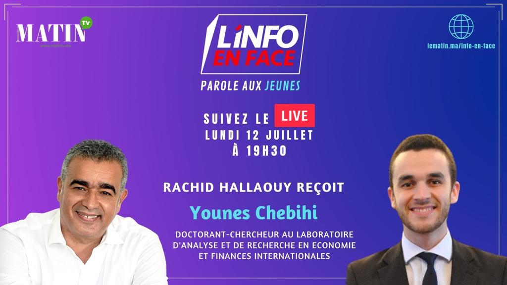L'Info en Face clôture la saison avec les jeunes en invitant quatre nouveaux profils à découvrir tout au long de la semaine. Ce lundi, c'est Younes Chbihi, docteur-chercheur au Laboratoire d'Analyse et de Recherche en Economie et Finances Internationales, qui partage sa lecture de l'actualité sanitaire et économique de notre pays.
