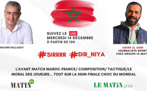 L'avant match Maroc-France, composition, tactique, le moral des joueurs... tout sur la demi-finale choc du Mondial en débat avec Amine El Amri, journaliste sport chez Groupe Le Matin, dans l'Info en Face